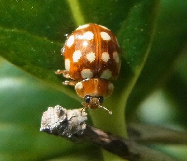 以前この公園でムーアシロホシテントウを見たことがあったので、ムーア君だろうと思って撮ったのだが、初めてお会いするシロジュウシホシテントウ様であった。